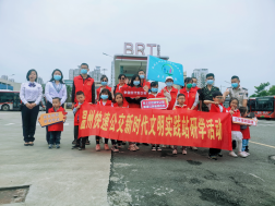在實踐站解說員的帶領(lǐng)下,小志愿者們陸續(xù)參觀了實踐站標(biāo)志建筑物;BRT一號線敬業(yè)主題調(diào)度室,了解日常公交智能調(diào)度、車載視頻監(jiān)控等方面規(guī)范化、智能化的管理,感受一線人員的敬業(yè)付出及榮譽;BRT一號線火車站站臺,了解站臺的誠信系列便民服務(wù)、紅色驛站、守護驛站、城市書巢、黨報閱讀屏等各項新時代文明實踐服務(wù)內(nèi)容,體驗了融入數(shù)字賦能的候車、乘車過程;接著登上”愛國、敬業(yè)、誠信、友善“等不同主題的車輛,感受通過車廂內(nèi)外的布置、車載電視等方式傳達出的新時代文明理念。