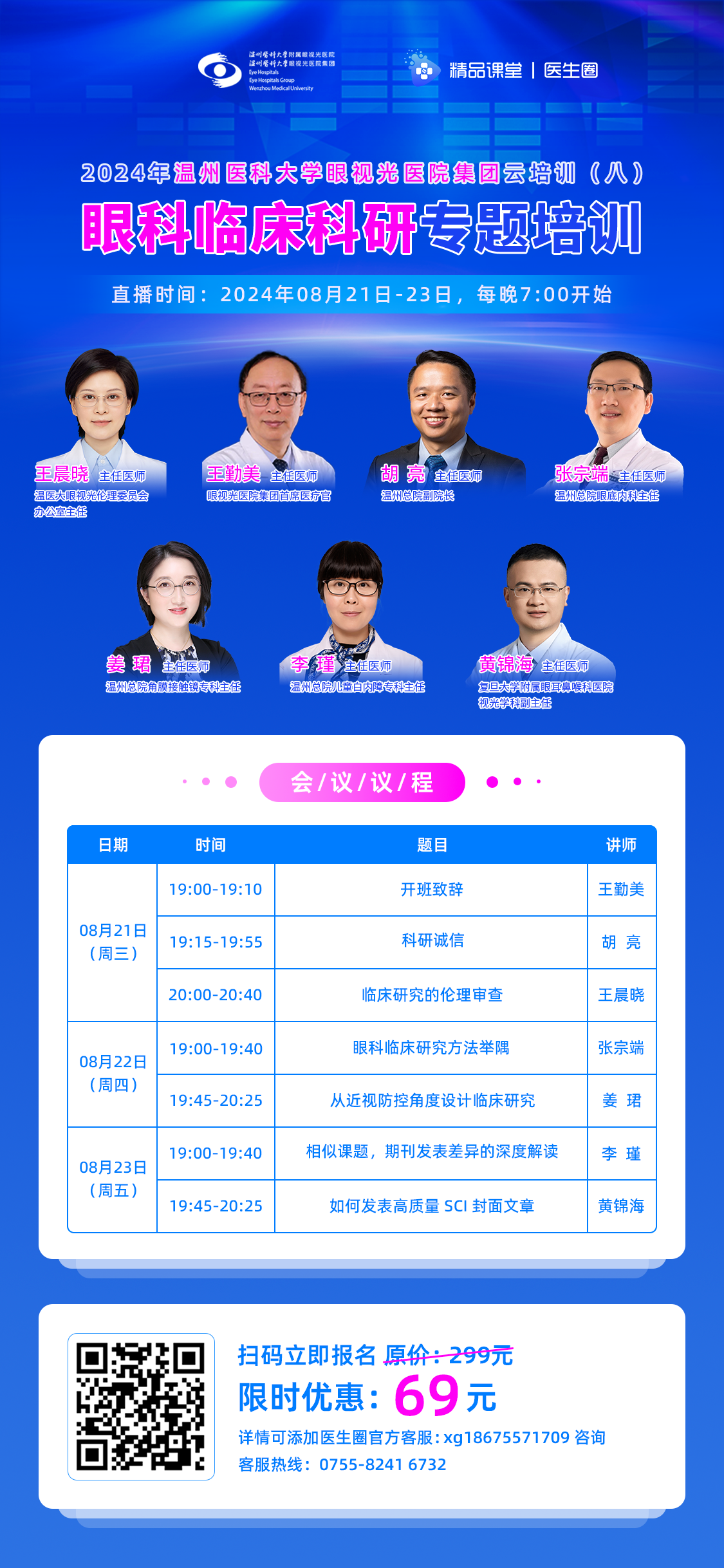 ? ? ? 為幫助眼科醫(yī)師在臨床實(shí)踐中應(yīng)用最新的科研成果,提升診療水平,溫州醫(yī)科大學(xué)眼視光醫(yī)院集團(tuán)首席醫(yī)療官王勤美教授,攜手資深講師團(tuán),為大家?guī)?天6課時(shí)的“眼科臨床科研專題培訓(xùn)”專題系列培訓(xùn)課程。授課內(nèi)容豐富,實(shí)用性強(qiáng),探討和解決臨床的實(shí)際問題。