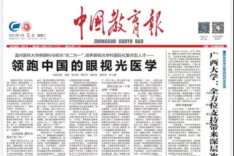 中國(guó)教育報(bào)·頭版:領(lǐng)跑中國(guó)的眼視光醫(yī)學(xué)