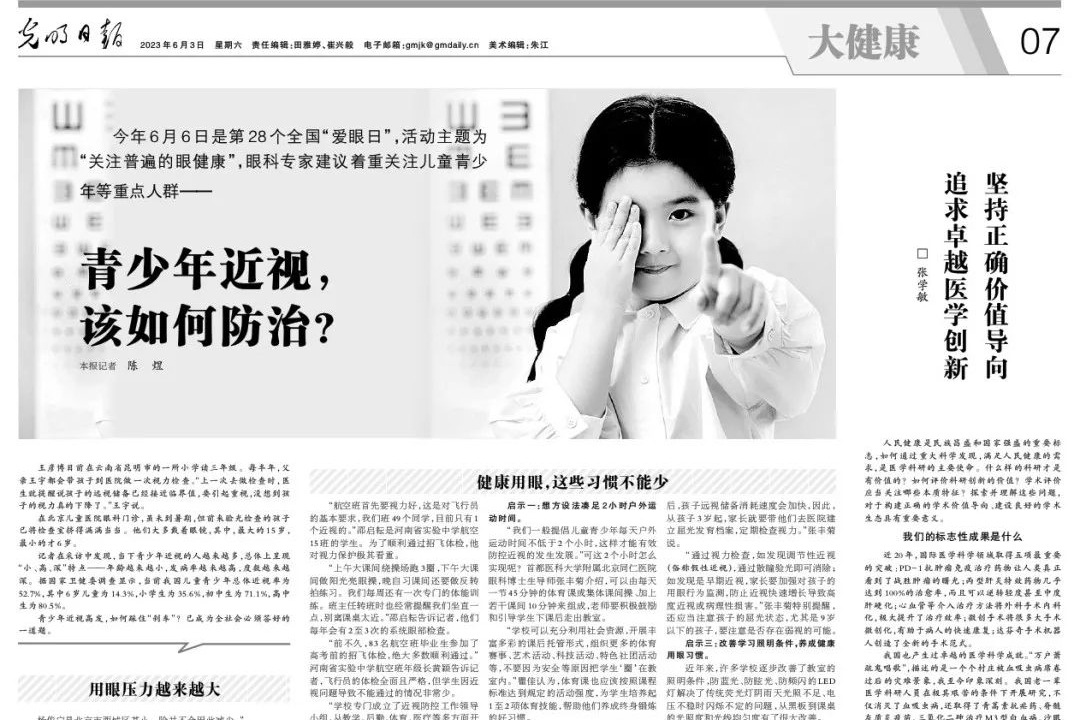 光明日?qǐng)?bào):青少年近視該如何防治?眼視光專家瞿佳、呂帆教授這樣說